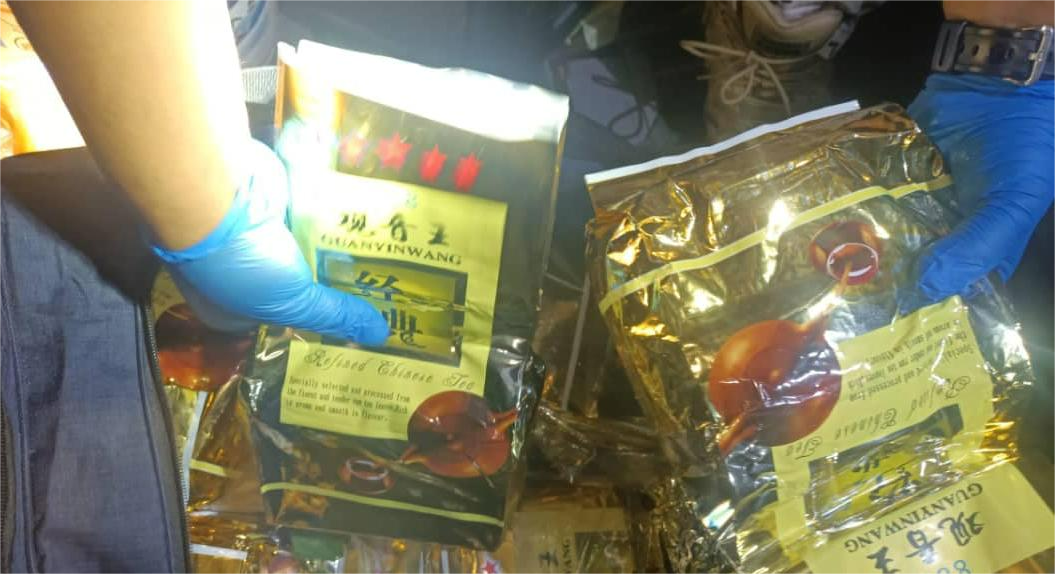 "Pemeriksaan ke atas bot yang ditinggalkan menemukan sebuah beg berwarna biru gelap yang mengandungi 20 bungkusan teh cina dipercayai dadah jenis Syabu dipercayai untuk kegunaan seramai 100,000 penagih.