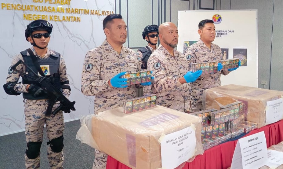 TUMPAT, 3 FEBRUARI – Cubaan menyeludup rokok tanpa cukai menggunakan laluan Sungai Golok gagal apabila Agensi Penguatkuasaan Maritim Malaysia (Maritim Malaysia) Negeri Kelantan berjaya merampas hampir satu juta batang rokok putih bernilai RM640,000 yang ditinggalkan di tebing sungai berkenaan, awal pagi baru-baru ini.
