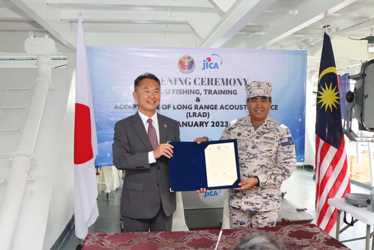 Terdahulu, Maritim Malaysia telah menerima empat LRAD sumbangan daripada kerajaan Jepun semasa Majlis Perasmian Bengkel IUU Fishing dan UNCLOS serta Penerimaan LRAD pada 9 Januari lalu. Keempat-empat LRAD akan ditempatkan di kapal-kapal peronda luar pesisir (OPV) milik Maritim Malaysia yang beroperasi di sempadan perairan negara.