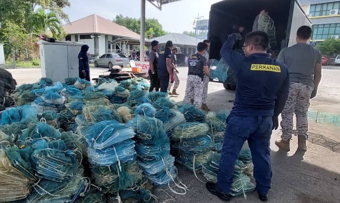 LUMUT, 18 Disember - Sebanyak 496 set bubu naga (Bubu Kambang) dengan anggaran nilai hampir RM50 ribu berjaya dirampas pihak Agensi Penguatkuasaan Maritim Malaysia (Maritim Malaysia) Maritim Negeri Perak dalam serbuan sempena OP MARDOF di Jeti Pangkalan Baru, Pantai Remis pagi tadi.