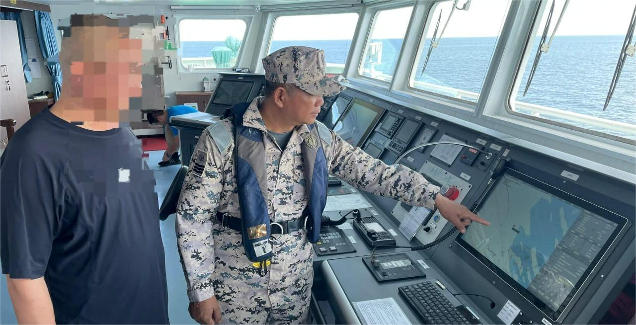 Bertindak atas maklumat, bot ronda Maritim Malaysia diatur gerak ke lokasi seterusnya telah menahan kapal kontena tersebut.