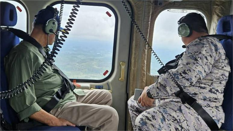 KUANTAN, 24 FEBRUARI – Menteri Besar Pahang, YAB Dato’ Sri Diraja Haji Wan Rosdy bin Wan Ismail hari ini meninjau keadaan perairan negeri Pahang dengan menyertai operasi udara Agensi Penguatkuasaan Maritim Malaysia (Maritim Malaysia) menggunakan helikopter AW139.