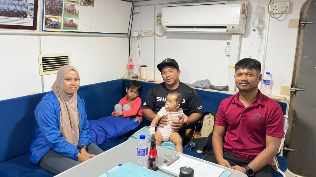 KUANTAN, 25 DISEMBER – Seorang pesakit bayi berusia lapan bulan yang mengalami pendarahan dalaman (Intracranial Bleed) telah berjaya dipindahkan dari Klinik Kesihatan Tekek, Pulau Tioman ke Hospital Mersing menerusi operasi bantuan pemindahan yang dilaksanakan oleh Agensi Penguatkuasaan Maritim Malaysia (Maritim Malaysia) melalui Maritime Rescue Sub-Centre (MRSC) Kuantan, hari ini.