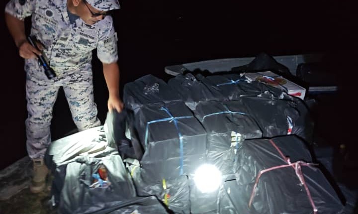 “Pemeriksaan ke atas sebuah bot fiber berwarna biru tanpa kru dan tanpa nombor pendaftaran mendapati, bot berkenaan membawa muatan disyaki seludup melibatkan 100 karton minuman keras pelbagai jenama dan 475 karton rokok putih pelbagai jenama yang dipercayai tidak bercukai,” jelas beliau.