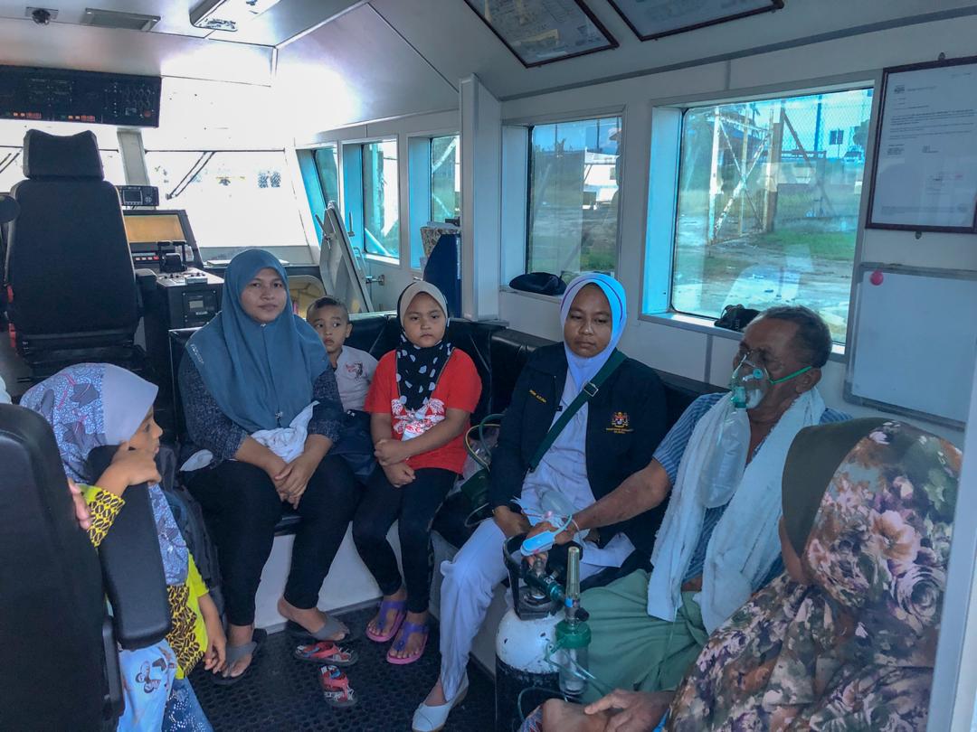 " Memandangkan pesakit perlu menerima rawatan segera dan teksi air agak sukar untuk beroperasi kerana keadaan laut yang bergelora pada ketinggian 2.5 hingga 3.5 meter, kami segera menggerakkan Bot Penyelamat 7 yang diketuai oleh Leftenan Madya Maritim Faris bin Mohd Sidek untuk memastikan pesakit segera menerima rawatan yang lebih baik, katanya lagi.