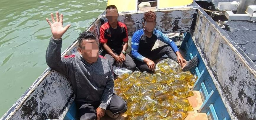 “Suspek dilihat cuba membuang beberapa objek ke laut setelah menyedari kehadiran bot ronda Maritim Malaysia. Hasil pemeriksaan lanjut mendapati bot tersebut membawa sebanyak 120 pek minyak masak bersubsidi yang dipercayai cuba diseludup keluar ke negara jiran,”