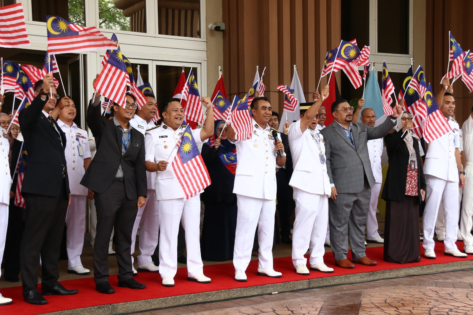 PUTRAJAYA, 22 Ogos – Majlis pemasangan Jalur Gemilang peringkat Ibu Pejabat Agensi Penguatkuasaan Maritim Malaysia (Maritim Malaysia) berlangsung meriah di perkarangan lobi utama tengah hari tadi.