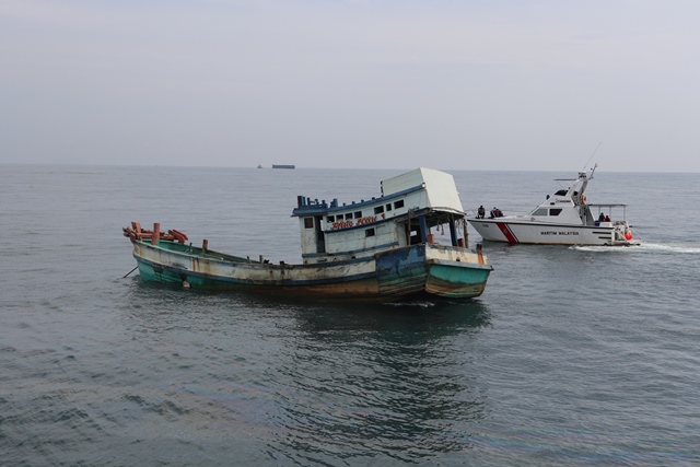 KUALA TERENGGANU, 30 Jun – Agensi Penguatkuasaan Maritim Malaysia Negeri Terengganu hari ini melupuskan dua bot Vietnam yang dilucut hak dengan kaedah pemusnahan secara ditenggelamkan sebagai tukun tiruan di perairan Batu Burok, Kuala Terengganu.