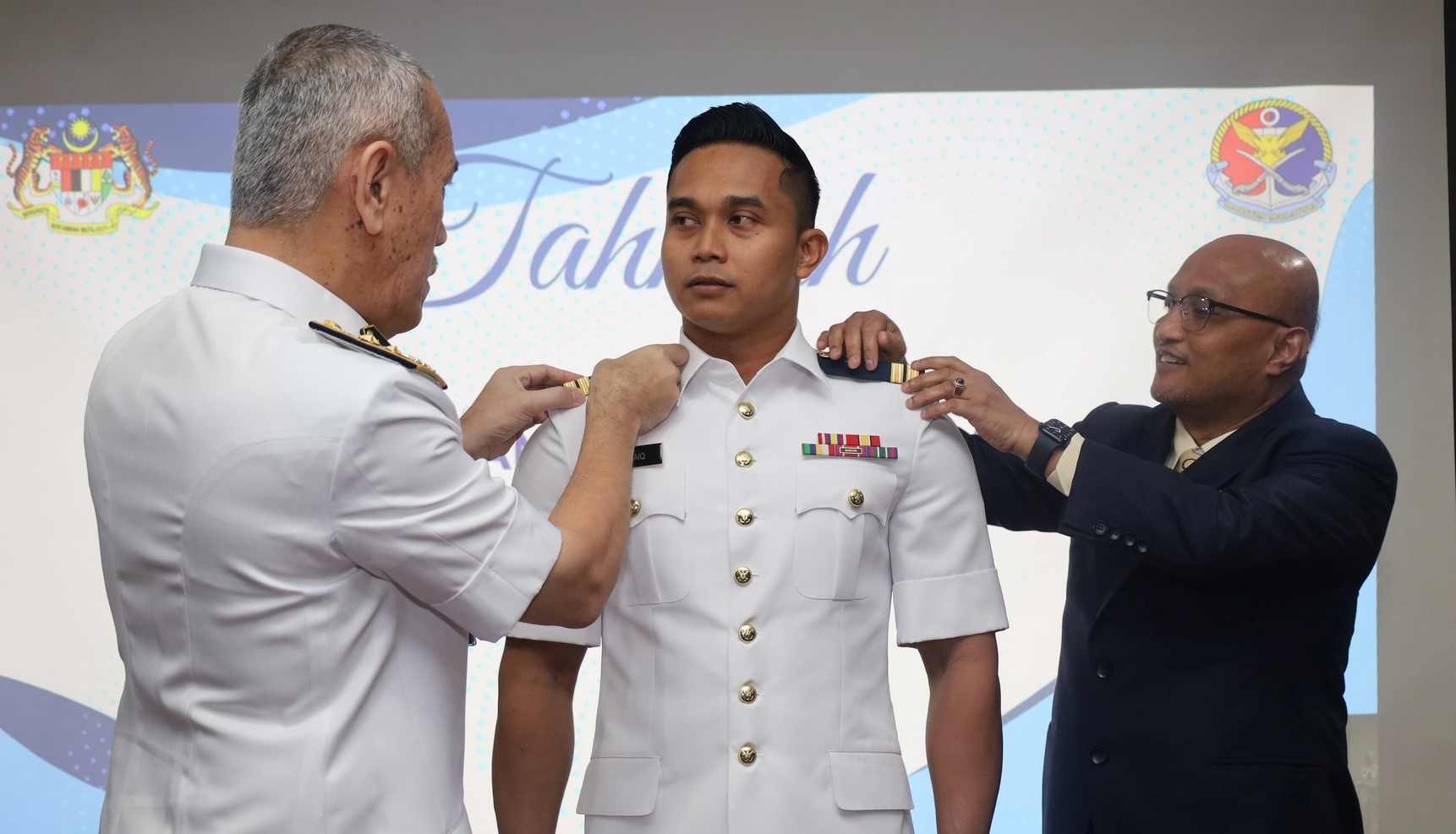 Pemakaian pangkat Leftenan Maritim Kehormat dan Leftenan Madya Maritim Kehormat juga diberikan kepada tiga orang pegawai dan pensyarah dari UMT, iaitu Borhanuddin bin Mohd Yusof @ Mohamed, Pengarah Pusat Kokurikulum dan Citra Pelajar UMT; Profesor Madya Teknologis Dr. Ahmad Faizal bin Ahmad Fuad, Pensyarah Kanan Ketua Jabatan Badan Beruniform UMT dan Pegawai Laut Pusat Perkhidmatan Penyelidikan dan Lapangan UMT, Mohamad Zahiruddin bin Mohammad Arif.